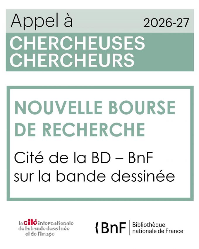 La bourse de recherche Cité de la BD – BnF sur la bande dessinée soutient un projet de recherche s’appuyant sur les collections de la Bibliothèque nationale de France et de la Cité internationale de la bande dessinée et de l’image.