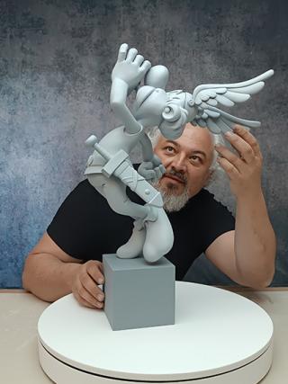 Depuis sa première sculpture para-BD en 2001, chaque nouveau projet est pour lui un laboratoire esthétique, une occasion de plus de transcender un personnage par son approche du volume.