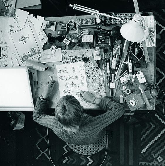 © Claire Bretécher à son atelier parisien. Photographie de Michel Quenneville.