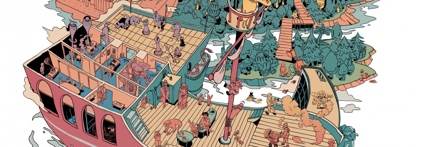 Le collectif DIG (Digression Imaginaire Généralisée) vous invite à découvrir ses Îles de la digression ! Cette fresque collective originale, pensée sous la forme d’un cherche-et-trouve géant sera exposée dans le hall du Vaisseau Moebius.