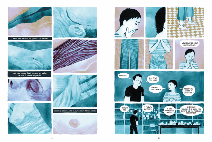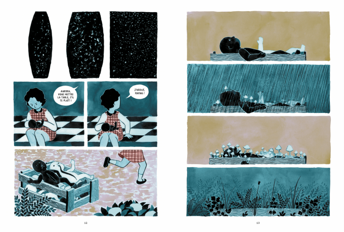 Pour le deuxième livre il y a eu aussi des allers et retours dans le processus parce qu’au départ je pensais faire une série de contes qui auraient eu pour point commun la faculté de médecine. Je voulais que ce soient des histoires séparées mais interconnectées. L’histoire d’Aurora n’était qu’une histoire parmi les autres puis son personnage serait réapparu de-ci de-là. Mais, au fur et à mesure, je me suis rendue compte que son histoire avait besoin de plus de temps parce qu’elle se déroulait sur plusieurs décennies. Un seul chapitre ne suffisait pas. Au final, c’est cette histoire qui est devenue centrale et d’autres sont devenues des histoires secondaires, parfois en mélangeant des histoires qui au départ devaient être des chapitres différents. Maintenant que je viens de finir un travail en collaboration avec des scénaristes je me suis familiarisée avec le scénario. Pour autant, je ne pense pas qu’un scénario doive nécessairement décrire toutes les images, mais c’est pratique d’avoir déjà tous les dialogues et une structure définitive. Cela me laisse encore une marge de manœuvre pour apporter de nouveaux éléments avec le dessin.