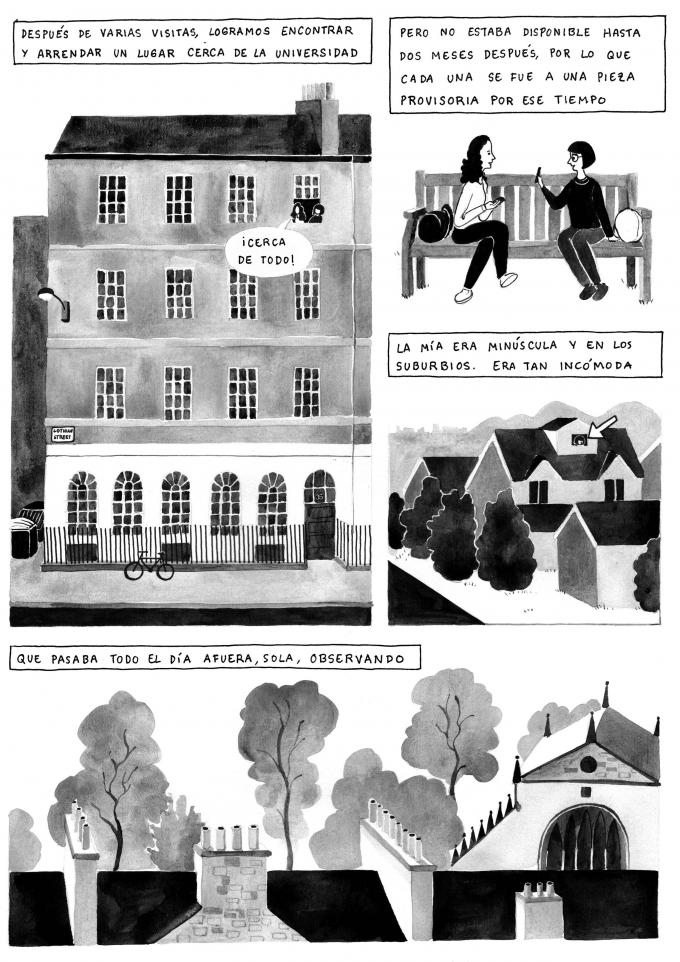J’ai fait les Beaux-Arts au Chili. Pendant mes études j’ai reçu une bourse pour un master d’Art contemporain en Écosse, à Édimbourg. C’était une expérience magnifique. J’y suis restée deux ans puis je suis partie en Erasmus pendant un an à Berlin et Grenade. Ensuite, j’étais tenue de rentrer au Chili pour rendre au pays son investissement dans mes études. Mais c’était assez frustrant parce que, dans le monde de l’art contemporain, tout fonctionne par réseau. J’ai eu l’impression de devoir repartir à zéro après mes années d’absence. C’est aussi un milieu très ingrat parce qu’il faut investir beaucoup de temps et d’argent pour produire des œuvres physiques, comme des sculptures ou des installations, qui requièrent du matériel et de l’espace, pour des expos qui sont finalement très brèves et touchent un public assez restreint, notamment au Chili où tout est concentré dans les beaux quartiers du Barrio Alto. Alors, comme j’étais frustrée par le rapport entre temps investi et impact, je me suis mise à expérimenter en bande dessinée. Pour moi, c’était un médium qui offrait beaucoup de possibilités tout en permettant d’établir une relation intime entre dessinateurice et lecteurice. C’est un art qui ne demande pas un grand investissement matériel ou physique, il suffit d’avoir une table et de se mettre à dessiner. J’ai commencé par faire des bandes dessinées expérimentales, mais je les trouvais trop intellectuelles et je n’étais pas convaincue par le résultat. Alors j’ai décidé de faire une histoire courte autobiographique sur un épisode de mon enfance. Et c’est venu très naturellement. Mes premières expériences me paraissaient forcées tandis que là, c’était fluide et drôle, tout en ayant de la profondeur, avec plusieurs niveaux de lecture. Très vite je me suis mise au projet qui est devenu mon premier livre, Al otro lado del vidrio [De l’autre côté de la vitre]. Aujourd’hui je me consacre presque exclusivement à la bande dessinée, avec parfois d’autres projets en parallèle, comme du dessin non narratif ou des commandes diverses et variées.