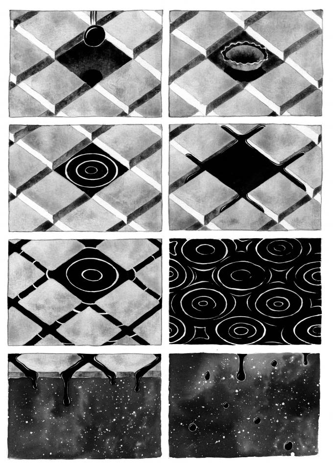 Je pense que ce genre d’idées vient de mon expérience en peinture, ou pour mes installations, pour lesquelles je devais penser au paysage et aux espaces. J’en ai gardé une fixation, une attention particulière accordée aux lieux. D’ailleurs, quand j’ai commencé à faire de la bande dessinée, travailler avec des personnages humains représentait un vrai défi.
