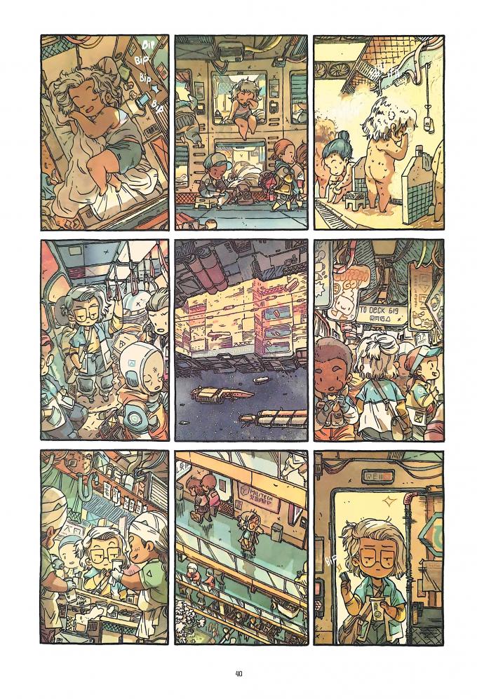 Cette hypothèse peut être nourrie par le fait que la veine anti-astrocapitaliste ne touche pas que la BD ni l’aire francophone. La littérature de SF contemporaine s’est emparée du sujet (Drift, Thierry Di Rollo, 2014 ; Astronautes morts, Jeff VanderMeer, 2023 [2019] ; Amazonies spatiales, collectif, 2024 ; Sister-ship, Elisabeth Filhol, 2024 ; Champs de la lune, Catherine Dufour, 2024) et les thèmes abordés dans cet article se retrouvent dans des comics comme Brink de Dan Abnett et Ian Culbard (publié de manière épisodique dans 2000 AD de 2016 à 2019) ou Arca, ou la nouvelle Eden de Van Jensen et Jessie Lonergan (IDW, 2018). Ils se retrouvent également dans des mangas comme La Cité Saturne d’Hisae Iwaoka (Kana, 2006-2012, 7 tomes) ou Nos temps contraires – Je ne te laisserai pas mourir de Gin Toriko (Akata, 2020-2022, 9 tomes). Le corpus étudié ici s’inscrit donc clairement dans une tendance contre-hégémonique forte dans la SF spatiale et l’astroculture actuelles.