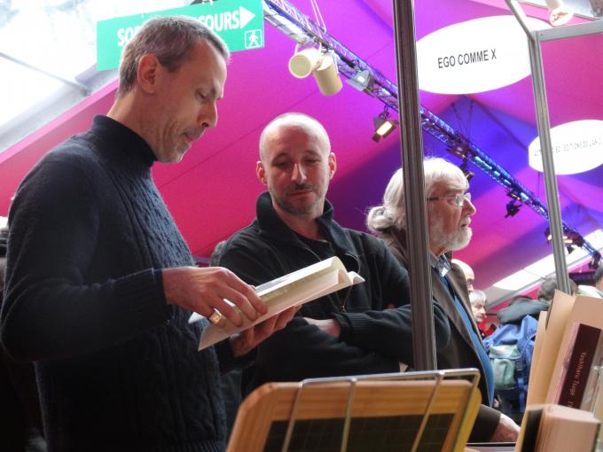 Portrait de Fabrice Neaud et Loïc Néhou sur le stand Ego comme X de l’édition 2014 du festival d’Angoulême.