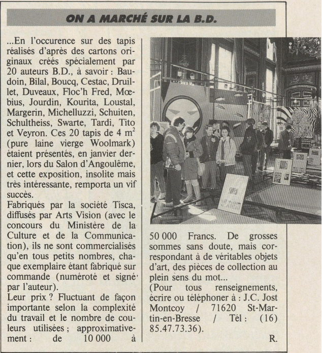 Tapis de « BD pure laine » dans (À suivre), n° 122, mars 1988, p. 80.