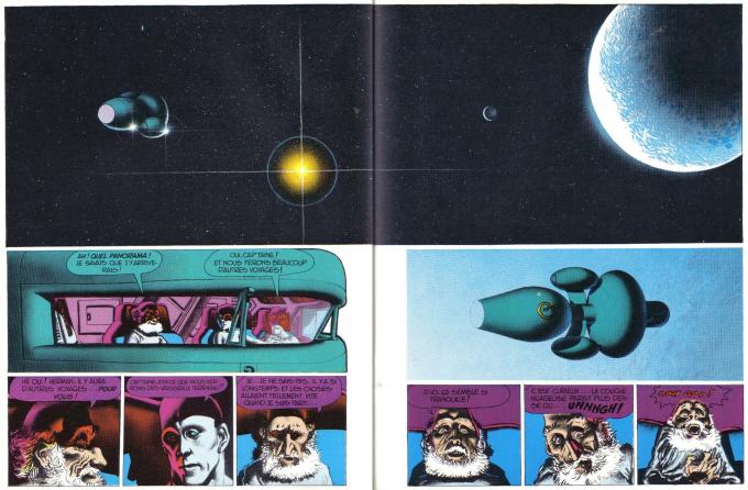 On comprend combien bande dessinée et science-fiction convergent dans ce projet de renouvellement des formes et des imaginaires. La manière dont la science-fiction contre-culturelle tente d’inventer des utopies réalisées, des mondes alternatifs ou des contre-récits de la modernité trouve son expression dans l’expérimentation des formes que revendiquent Mœbius et Druillet, et qui connaîtra des prolongements dans la structure des certains récits proposés par Bilal, Masse ou Macedo. Mais cette expérimentation thématique et formelle doit en passer par la subversion des codes, afin de ne pas retomber dans les ornières du genre (colonialisme, virilisme, éloge de la violence, foi aveugle dans le progrès), dénoncées à la même époque par la presse contre-culturelle. C’est ce qui explique que la reprise des stéréotypes de la science-fiction est aussi une critique de ses héritages : en couverture du numéro 3, Serge Clerc parodie les conventions des pulps des années 1940 ; en parallèle, Mandryka se moque dans Jules L’éclair des comics de l’entre-deux-guerres (et de Flash Gordon, traduit en France par Guy l’Éclair). On s’en prend également au militarisme et à l’impérialisme du space opera, comme le font Bilal (« Crux Universalis », n° 6 ; Exterminateur 17, n° 11-19), Tardi (« Lune de miel », n° 6) ou Mézières (« Baroudeurs de l’espace », n° 7).