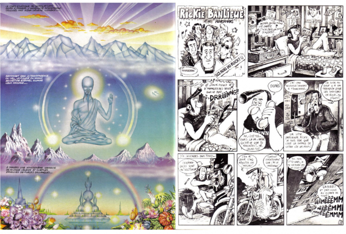 Ainsi les auteurs discutent de manière ludique les héritages des séries culturelles dans lesquelles le périodique s’inscrit. Mais si la parodie vise à arracher le genre et les formes à leur naïveté enfantine et aux idéologies qui l’accompagnaient, le pastiche, quant à lui, tend à affirmer la virtuosité des auteurs en réinscrivant leurs œuvres dans une histoire du genre : les bandes dessinées de Serge Clerc ou d’Yves Chaland revisitent la science-fiction des années 1950 exactement comme Dodo et Ben Radis ou Denis Sire pastichent la culture rockabilly. Dans un cas comme dans l’autre, ils font avec érudition des productions populaires des années 1950 et 1960 le cœur de leur paradigme contre-culturel, tout comme les chroniques et critiques de Dionnet et de Manœuvre privilégient l’illustration (Finlay, Kirby) contre la peinture ; la littérature de genre (Lovecraft, Howard) contre le canon littéraire ; le rock et le hard rock contre la musique classique ou le jazz. Cela vient de ce que leur culture est celle d’enfants des Trente Glorieuses et du Plan Marshall ; elle s’enracine dans cette consommation hédoniste qu’ont permis l’arrivée des produits américains et les nouvelles stratégies de séduction des industries culturelles européennes, et dessine un imaginaire de jeunesse dont le vinyle, la bande dessinée, les paperbacks ou la mode sont quelques-uns des vecteurs, encore souvent critiqués comme ressortissant d’une culture de masse stigmatisée. Reste que s’ils représentent la première génération qui a grandi avec ces nouveaux médias et modes d’expression de la culture de consommation, les auteurs sont encore marqués par un discours général de dévaluation de ces objets qui forment leur culture, oscillant entre boulimie consumériste et érudite (Dionnet) et critique de la société de consommation (Philippe Caza, le premier Mœbius). Or, pour fonder un discours artistique reposant sur les principes modernistes d’une singularité créative, au sein de cette culture illégitime qui est la leur, artistes et rédacteurs sont contraints d’opérer une transmutation de cette pop culture qu’ils investissent, puisque celle-ci représente à la fois ce dont ils se nourrissent et ce contre quoi ils créent.