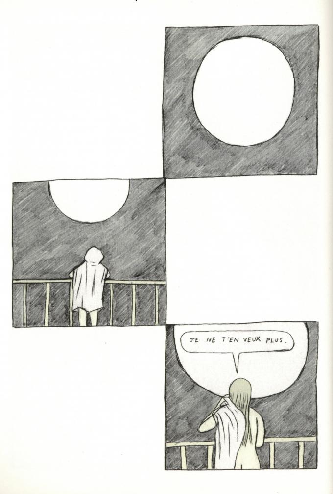 Il y a, à la fois, la progression dans le dessin (j’apprends à « mieux » dessiner, à essayer d’autres cadrages, d’autres perspectives) mais aussi, comme tu le dis très justement, le fait qu’Avant l’Oubli a un côté petit théâtre, en toc, ce qui marchait bien avec une mise en scène plus graphique et moins réaliste. Astra Nova, au contraire, est plus cinématographique, on est plus dans l’intimité des personnages, la caméra est plus près, les décors plus tangibles. En fait, j’ai une envie d’un certain type de ressenti quand j’écris mes histoires, ce qui me pousse à « m’améliorer » dans les dessins. Pour Astra Nova, je voulais qu’on ressente plus les expressions des personnages et que les lieux soient plus rationnels, ce qui m’a donc forcée à travailler les expressions et les perspectives. Pour Sangliers, j’ai eu besoin de travailler les gros plans, les détails de peau et de visages par exemple. Donc, au fur et à mesure des projets, je m’améliore dans un domaine qui sied à l’histoire. C’est ça qui est chouette avec le dessin, c’est qu’il y a toujours à apprendre.