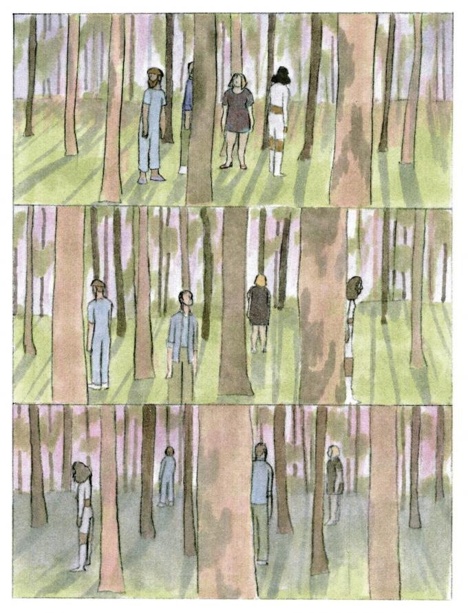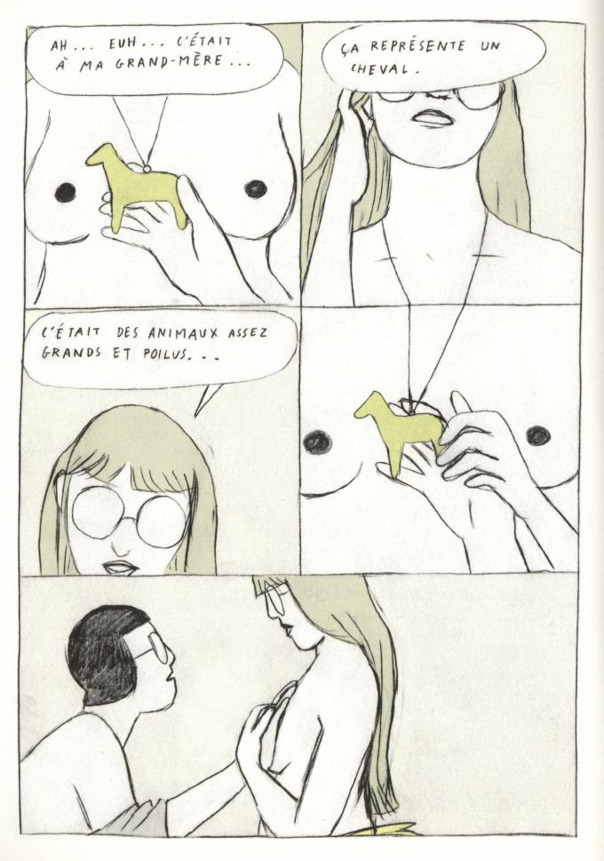 Effectivement, c’est un peu méta, mais je trouve que cet effet de boucle est très sensible dans Avant l’Oubli. C’est peut-être dû aussi à la forme chorale du récit et aux micro-détails disséminés, qui poussent à relire plusieurs fois pour récolter des indices sur ce qui se trame en profondeur. Par exemple, dans la maison du vieil homme, il y a un tout petit dessin de cheval accroché au mur, animal que l’on retrouve aussi sur le pendentif d’un autre personnage. On en vient à se demander s’il y a un lien entre ces signes, si le récit suggère quelque chose mais le laisse dans l’implicite, pour nous mettre à l’affût du sens. Qu’en penses-tu ? Est-ce que cette idée d’enquête t’est apparue au fur et à mesure de l’écriture ou est-ce que c’était surtout inconscient ?