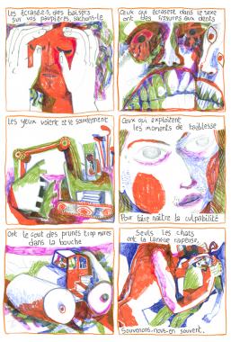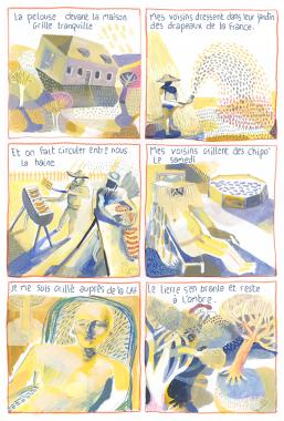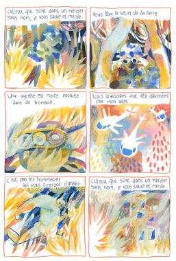 Félix Rouxel est né en 1994. Peintre et auteur de bandes dessinées, il vit et travaille à La Virevolte, un collectif artistique en région Centre-Val de Loire. Après des études à l’ENSA (école nationale supérieure d’architecture) de Paris-Belleville, il se consacre à la peinture, réalise des tableaux, des fresques et donne des cours de dessin. Pour lier ses recherches à d’autres pratiques, il intègre et/ou fonde différents collectifs artistiques. Il y réalise des œuvres murales et des scénographies peintes, des décors de théâtre, de la création lumière et met en scène des spectacles d’ombres. Désirant produire des créations dans lesquelles il peut transmettre plus directement les questionnements contemporains qui l’agitent, il se tourne vers la bande dessinée à partir de 2022. Ce médium lui permet d’inventer des récits politiques accessibles, et de poursuivre ses expérimentations picturales. En résidence, il développe un récit engagé dans lequel il explore les luttes individuelles contre l’extractivisme et l’effacement du vivant à travers l’histoire d’un collectif qui a décidé de planter des arbres dans un monde aride.